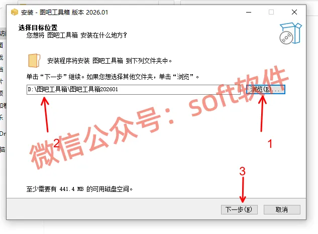 3,点浏览可更改安装位置,本教程以D盘为例,在D盘新建图吧工具箱文件夹,然后点下一步。