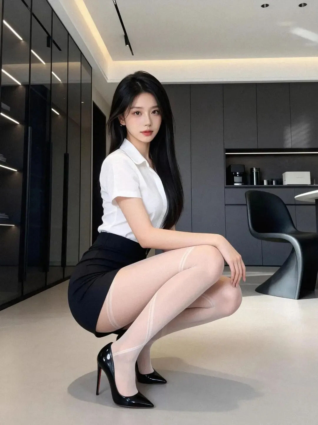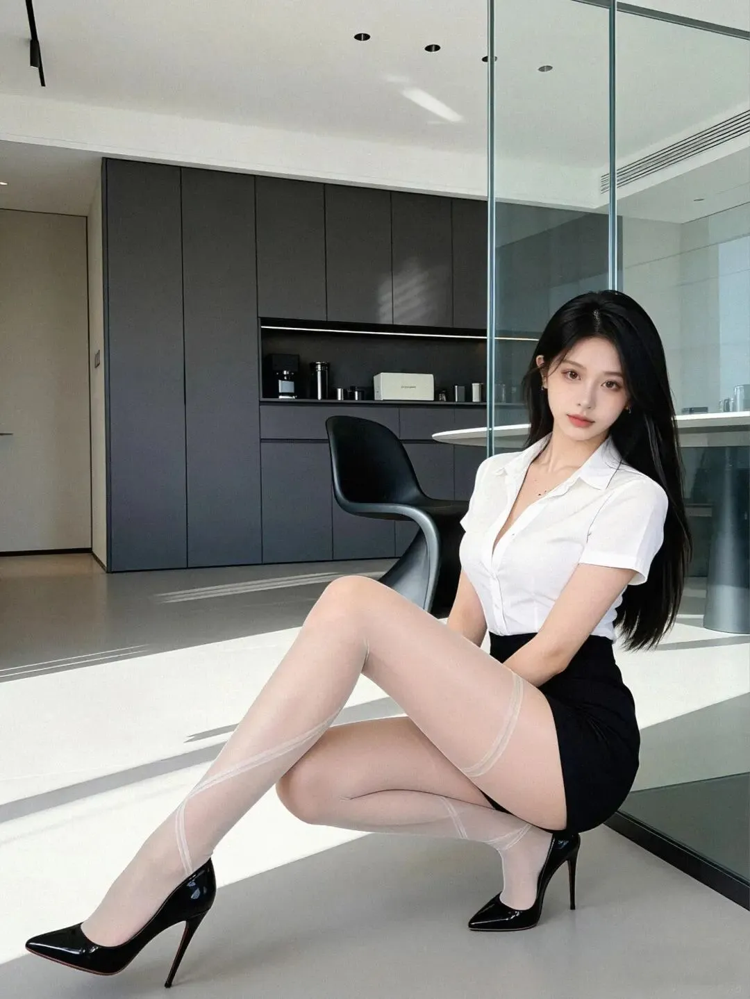 Office Siren 绝杀 | 极简黑白里的清冷纯欲感午后阳光透过玻璃洒下,给极简冷调的空间揉进一丝慵懒。今天走一个毫不费力的“高智感”路线!修身款V领白衬衫搭配高腰包臀黑裙,利落收出绝美沙漏曲线,经典黑白配永远不出错~ 最大的吸睛亮点是这条交叉绑带设计的透感白丝,打破常规,若隐若现的纯欲氛围直接拉满!踩上一双黑漆皮细高跟,随意地蹲坐在光影里,清冷高级又带着点小傲娇,财阀千金出街的松弛感轻松拿捏!#OOTD#极简穿搭#黑白穿搭#OfficeSiren#清冷感#纯欲风#高级感穿搭#财阀千金#白丝#红底鞋高跟鞋#职场穿搭#松弛感#设计感单品#辣妹穿搭#氛围感照片