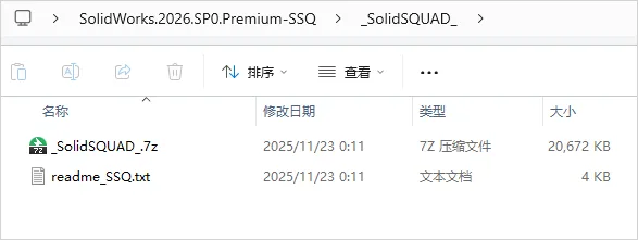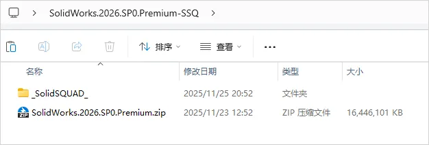 1.打开下载的SolidWorks软件安装包并解压其中的SolidWorks.2026.SP0.Premium.zip,如下图所示。