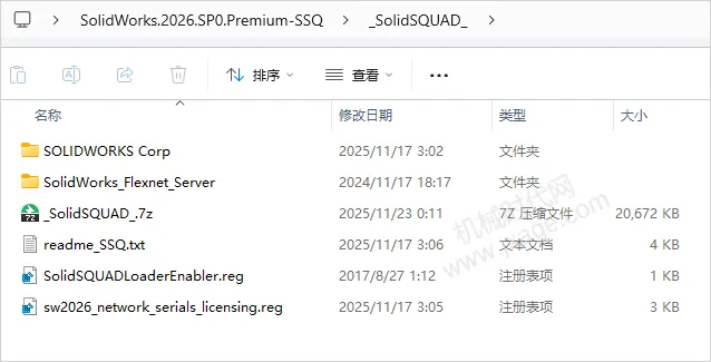 5.双击运行下图_SolidSQUAD_文件夹中的“sw2026_network_serials_licensing.reg”文件。