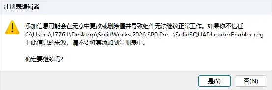 20.双击_SolidSQUAD_文件夹中的“SolidSQUADLoaderEnabler.reg”文件,然后点击确定。