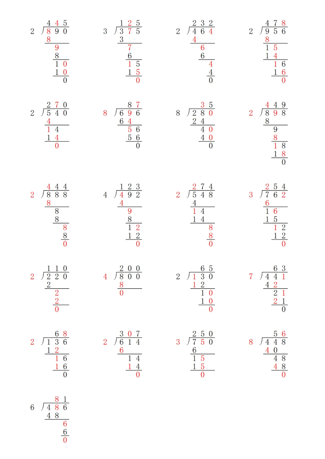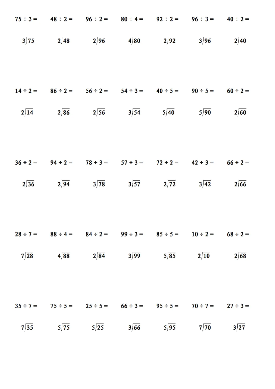 三年级下册数学除法笔算练习pdf下载,可打印!↓ ↓ ↓ 文档下载 ↓ ↓ ↓[三年级下册][除数是一位数的除法]两位数除以一位数1.pdf[三年级下册][除数是一位数的除法]三位数除以一位数2.pdf [三年级下册][除数是一位数的除法]两位数除以一位数3.pdf[三年级下册][除数是一位数的除法]三位数除以一位数4.pdf写作训练书
