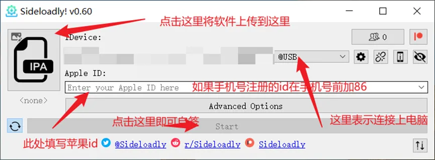1. 自签 Misaka 应用需要电脑和科学上网环境。电脑安装sideloadly(目前爱思助手存在问题会报错)。注:Win用户请先卸载商店版 iTunes 和 iCloud,重新安装网页版。打开 Sideloadly,数据线连接手机点击信任。完成自签 Misaka(先不要点开)。