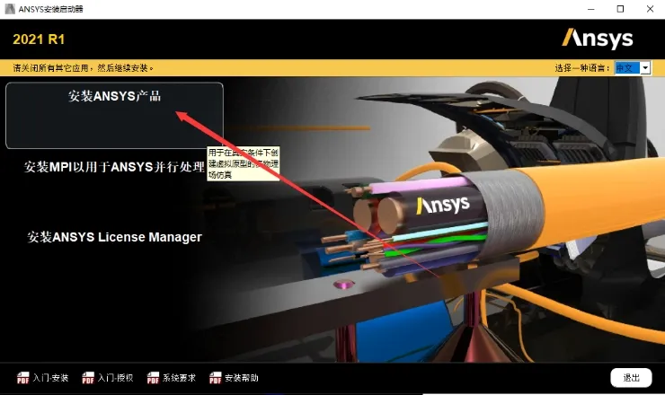 4. 点击【安装ANSYS产品】。