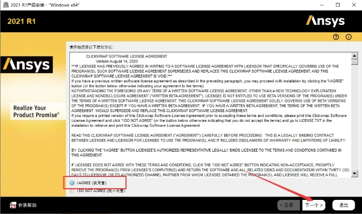 5. 勾选【I AGREE】并点击“下一步”。