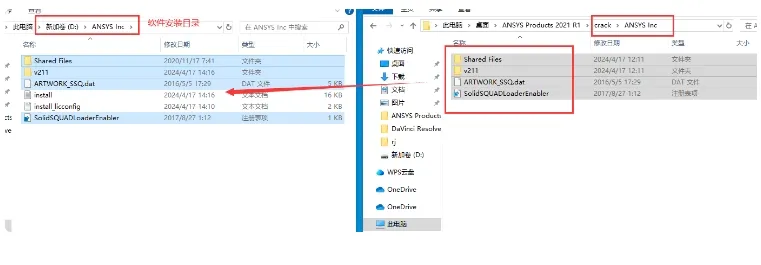 21. 将破解文件从 `crack\ANSYS Inc` 文件夹复制到安装目录下。