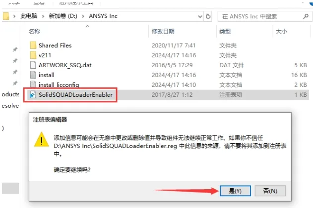 27. 双击运行 `SolidsQUADLoaderEnabler`,点击“是”。