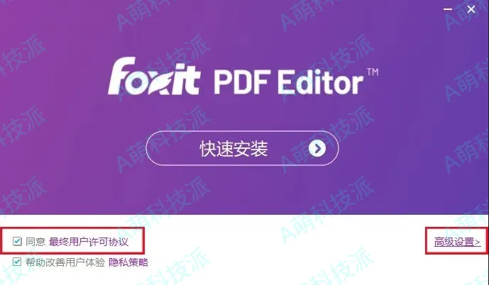 4.勾选【同意最终用户许可协议】,然后点击【高级设置】。