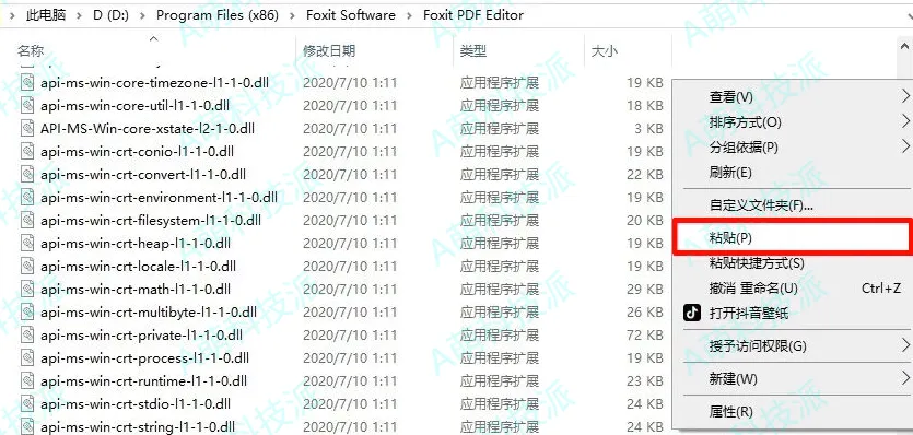10.在打开的文件夹空白处,鼠标右击【粘贴】刚才复制的注册机。