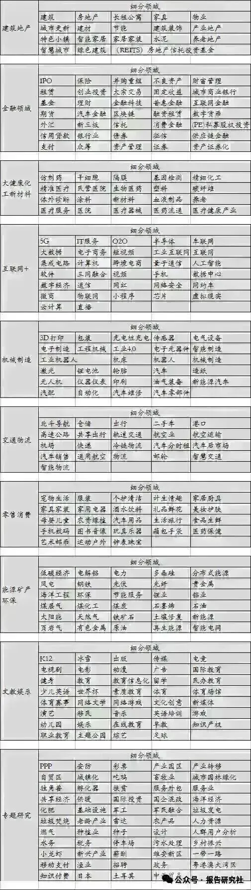 附报告覆盖行业范畴