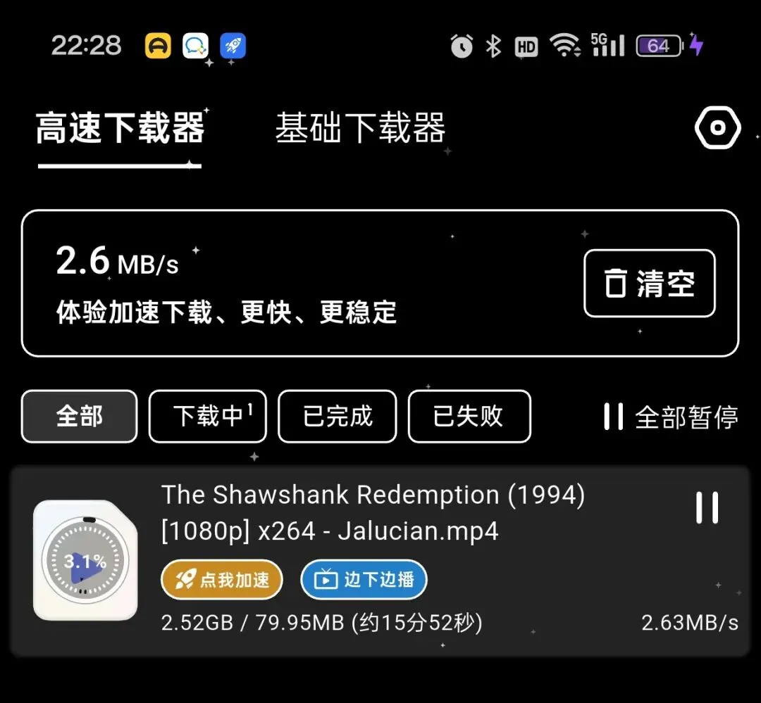 边下边播功能:边下边播功能自然是这类神器的刚需。大家懂得抖动,有时候有些大文件,明明可以预览,如果没有这个功能,那就感觉少了一些神器,效率大大降低,黑夜下载APP这个功能体验汉邦!而且经过测试边下边播功能体验很棒,有的资源甚至可以做到秒播~
