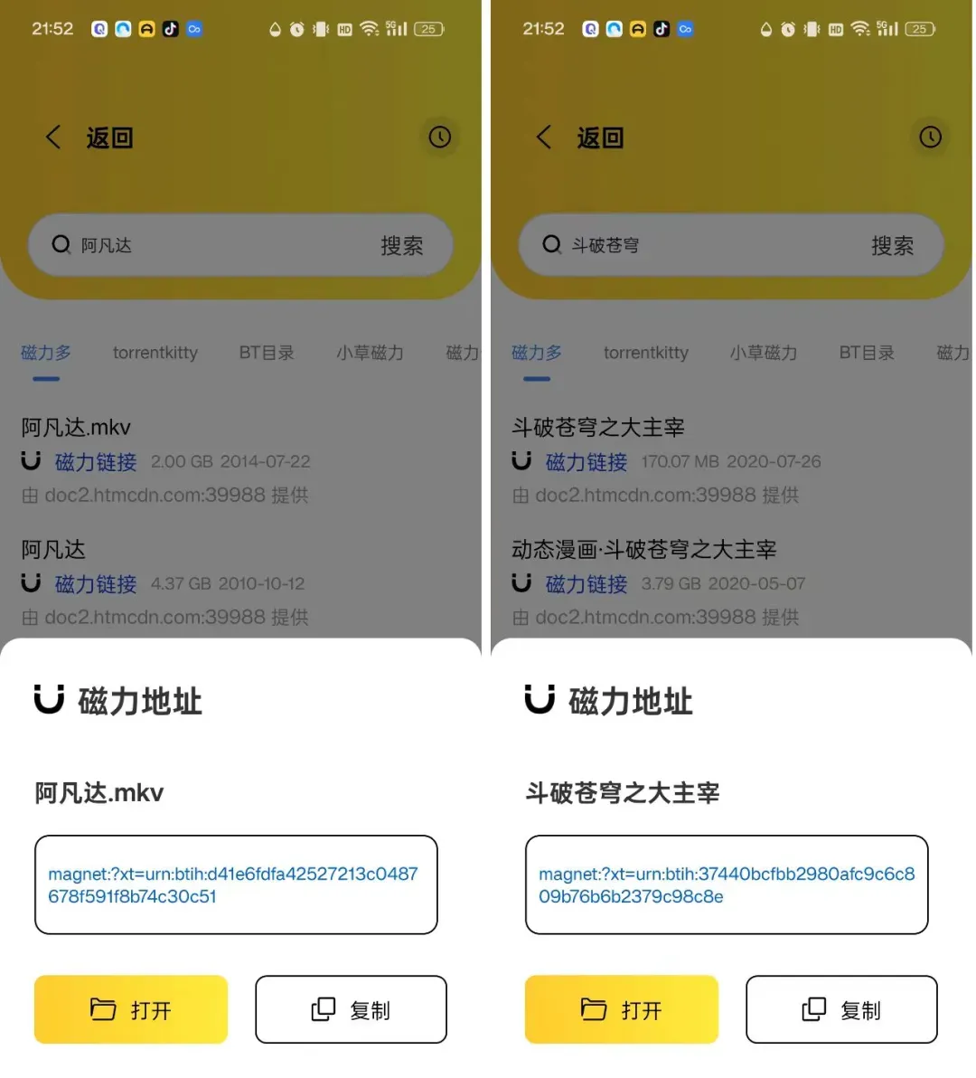 搜索出结果之后,你就可以把它复制粘贴到像”某雷“这种磁力下载工具里进行下载操作啦~毕竟再好的搜索工具,下载工具才能发挥出他的最强潜力。