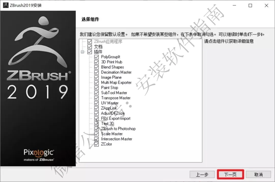 7.选择需要安装的组件,然后点下一页