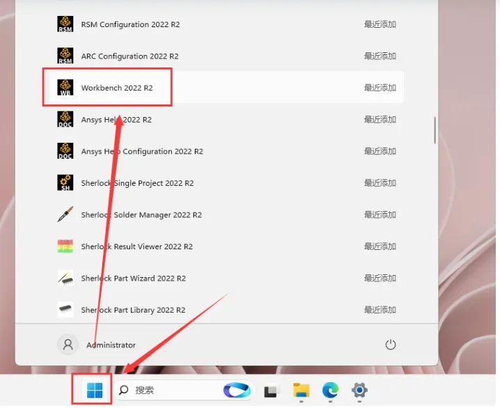 在电脑开始菜单中找到并启动`Workbench 2022 R2`。