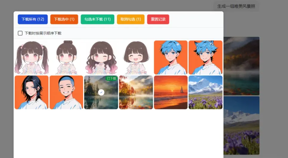 批量操作:支持一键下载当前页面所有图片,无需一张张手动点。