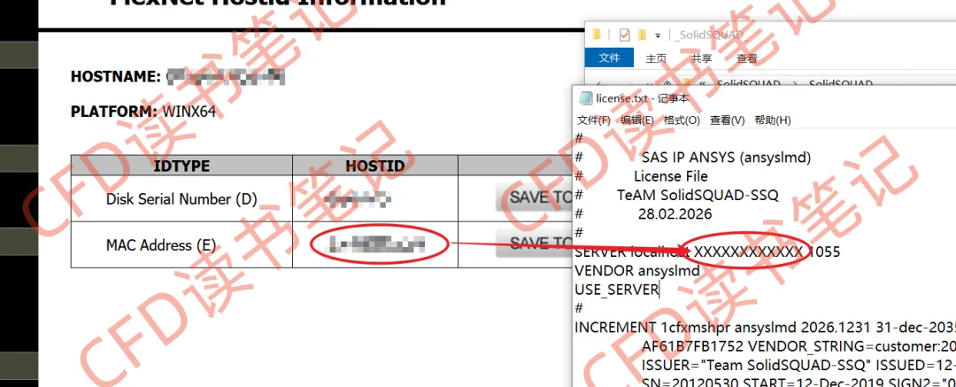打开license.txt文件,将XXXXXXXXXXXX替换为hostid,localhost替换为hostname,并保存文件。这里hostid是mac地址,hostname为计算机名。