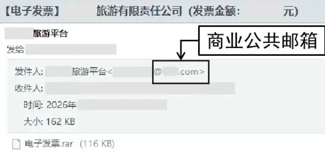 收到来自所谓“财务部门”“发票平台”的邮件,先核对发件人邮箱。正规官方邮箱多含单位专属域名(如“@company.com”“gov.cn”),而钓鱼邮件通常为临时注册邮箱,使用商业公共邮箱常见后缀,要仔细甄别,不点击,不回复。