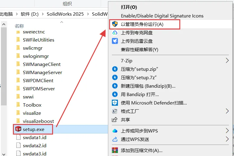[温馨提示]:我们提供用户下载的所有内容均来自互联网。仅限技术交流,不得用作商业。注意!!!开始解压安装前一定要退出杀毒软件 (不然会误删激活工具)(包括第三方杀毒软件和电脑自带、防火墙、Windows Defender和实时保护等会拦截删除激活文件,安装完再打开!)SolidWorks 2024和2025安装步骤一样,下面使用2025示范: