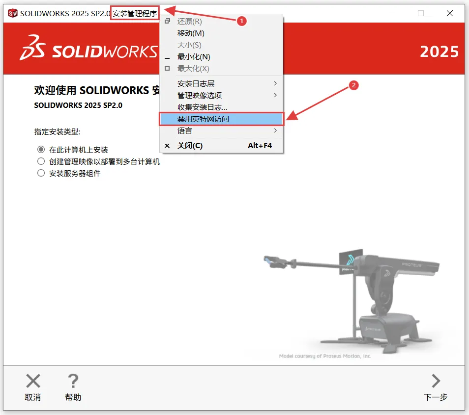 1.先把下载好的压缩包解压出来,没有解压软件安装一个再操作。2.双击打开解压好的【SolidWorks 2025】文件夹。4.选中【补丁】文件,鼠标右键【解压到当前文件夹】。5.双击打开【sw2025_network....】文件。8.选中【Solidworks_Flexnet_Server】文件夹,鼠标右键【复制】(也可以选中直接Ctrl+C键复制)9..进入电脑C盘的根目录,鼠标移动在空白处右键选择【粘贴】。10.双击打开粘贴过来的【Solidworks_Flexnet_Server】文件夹。11.选中【server_install...】文件,鼠标右键点击【以管理员身份运行】。12.等待显示【服务已经启动成功】,然后点击【X】关闭窗口。13.返回刚才解压好的文件,双击打开【安装包】文件夹。14.选中【setup】,鼠标右键选择【以管理员身份运行】。15.鼠标移动到顶部文字位置,然后鼠标右键点击【禁用英特网访问】。17.左边可以勾选需要的程序,然后点击【下一步】(默认全选)19.可以修改路径的第一个字符C更改安装位置,如把C改为D软件将安装到D盘,改好点击【返回到摘要】。(我这里改成了D盘,可以根据自己电脑情况更改,请记住自己选择安装在那个盘符,后面要用)20.再点击【Toolbox/异性孔..】后方的【更改】。21.可以修改路径的第一个字符C更改安装位置,如把C改为D软件将安装到D盘,改好点击【返回到摘要】。22.点击【Electrical选项】后方的【更改】。(若没有勾选可忽略此步)23.可以修改路径的第一个字符C更改安装位置,如把C改为D软件将安装到D盘,改好点击【返回到摘要】。24.更改好,打勾【我接受SOLIDWORKS】,然后点击【现在安装】。27.安装完成,取消勾选【为我显示......】,再选择【不,谢谢】,最后点击【完成】。1.返回刚才解压文件,双击打开【Crack】文件夹。2.双击打开【SolidSQUADLoader...】文件。5.鼠标可以移动到电脑底部任务栏右键打开【任务管理器】。(也可以同时按键盘ESC+Shift+Ctrl打开)6.找到选中【SldWorks_fs】右键【结束任务】。7.选中【Program Files】文件夹进行【复制】。8.进入步骤19自己选择的盘符根目录,鼠标移动在空白处右键选择【粘贴】。(我前面步骤更改到了D盘,这里就打开D盘根目录粘贴)10.返回电脑桌面,双击【SOLIDWORKS Electrical】快捷方式,启动软件。1.安装提示【未成功:MicrosoftC++....】解决方法:下载一个【微软常用运行库】修复一下再重新就可以解决。https://pan.quark.cn/s/6c1314af4313