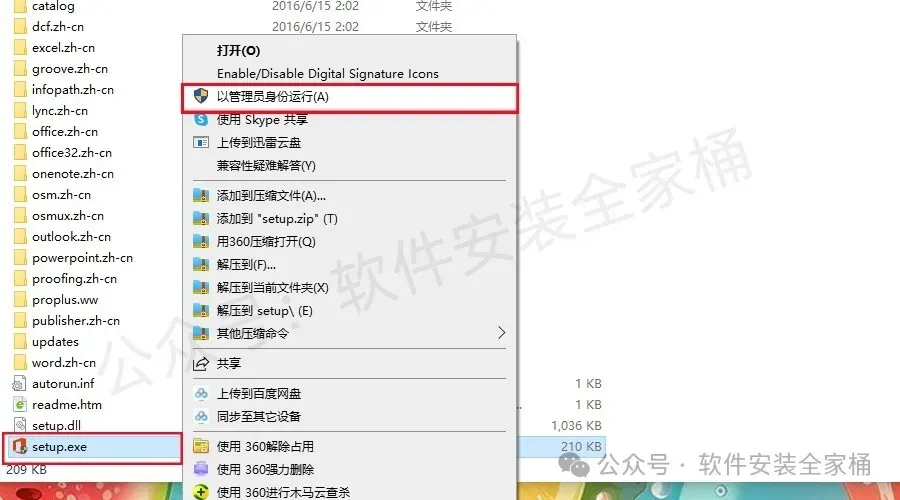 3、找到安装包setup程序,以管理员身份运行。