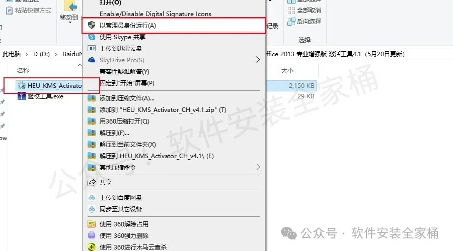 7、打开激活工具,以管理员身份运行。