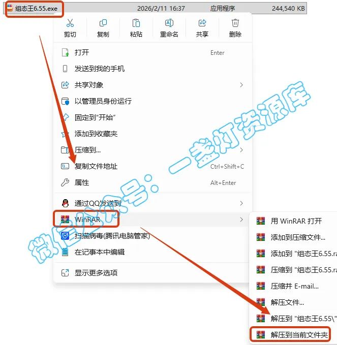 1.选中下载的压缩包,然后鼠标右键选择【解压到当前文件夹】