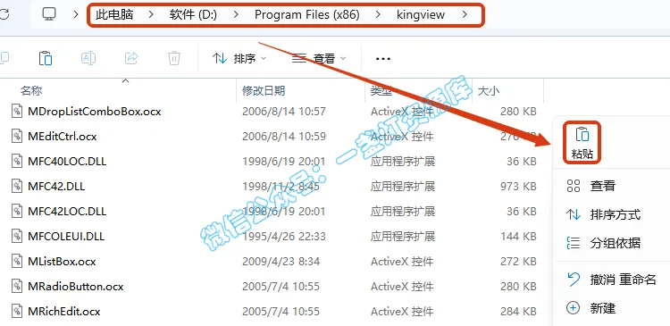 31.在打开的文件夹空白处,鼠标右键【粘贴】刚才复制的文件