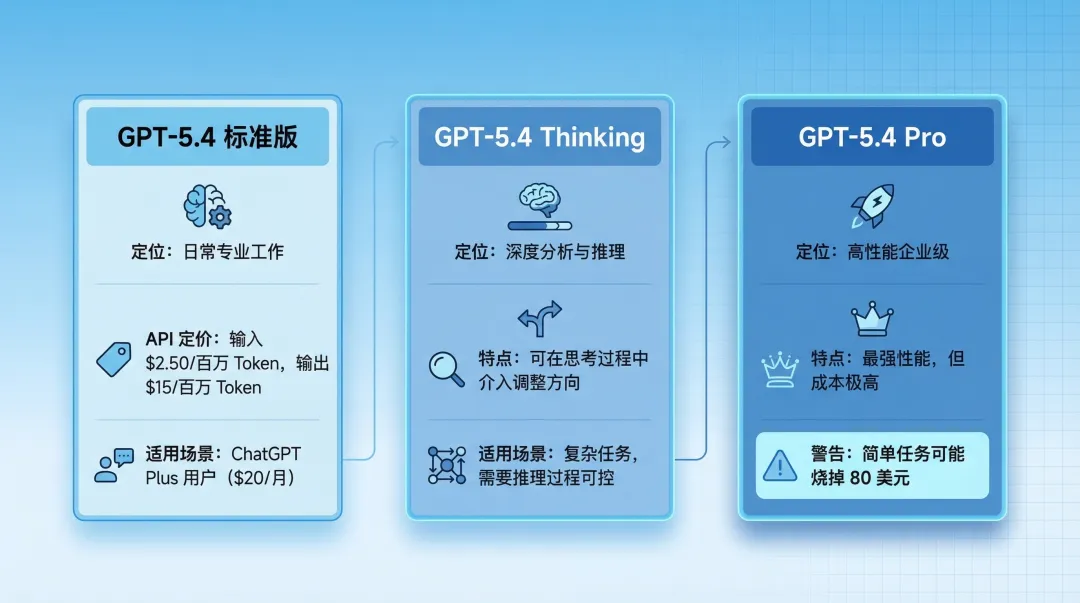 GPT-5.4 这次发布了三个版本,定位完全不同。