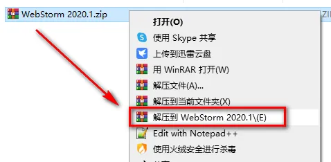 1.鼠标右键解压到“WebStorm 2020.1”