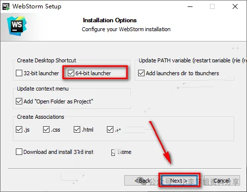 2.双击打开【Setup】文件夹 ![]() 3.选中WebStorm-2020.1,鼠标右键选择“以管理员身份运行” ![]() 4.点击“Next” ![]() 5.选择软件安装路径,点击“Next” ![]() 6.勾选64-bit launcher,其余的根据个人需求勾选,点击“Next”