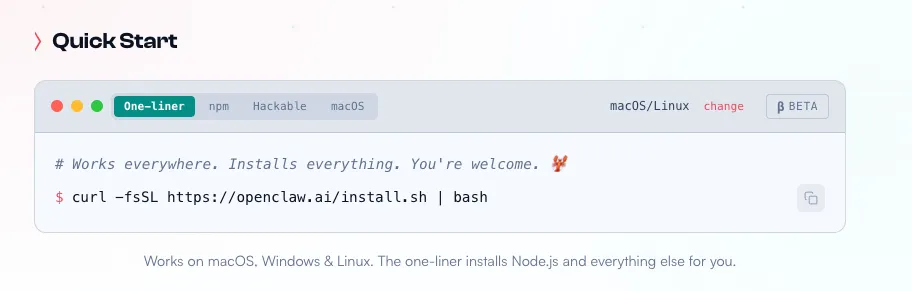 本文采用 Node.js + npm 的方式安装 OpenClaw。