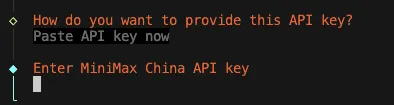 获取 API Key 后,在终端中输入并回车。