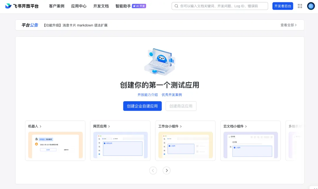 首先进入 飞书开放平台。