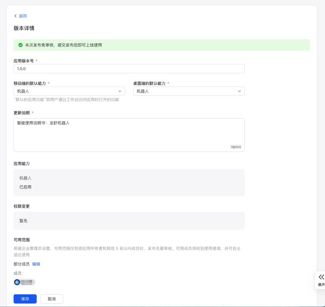 应用名称(例如:智能使用说明书-龙虾机器人) 应用描述 应用图标