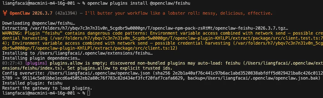 先把 全局自带的 feishu 删掉,只保留你家目录里的那份: