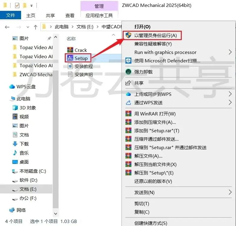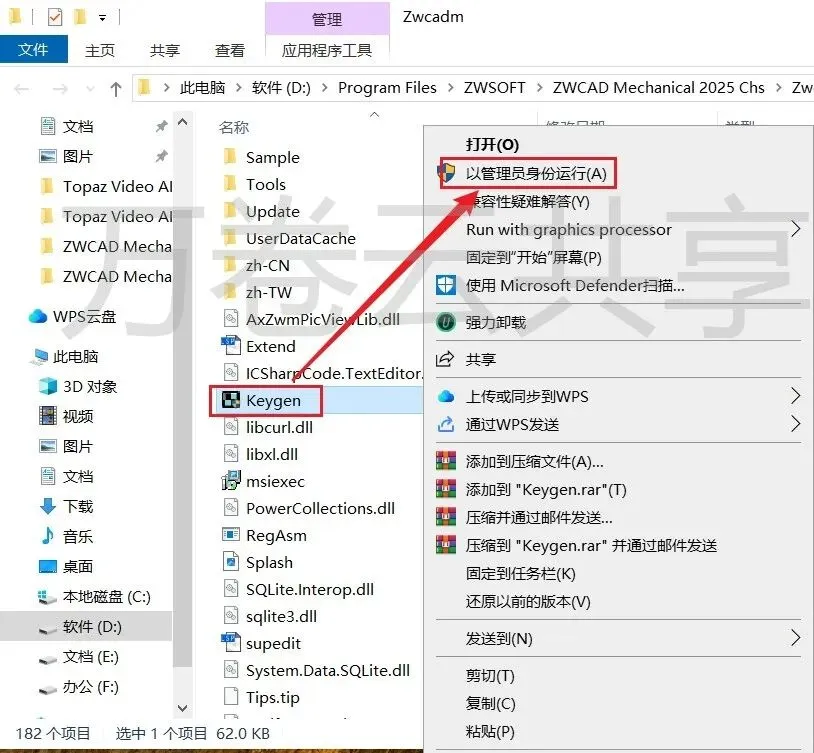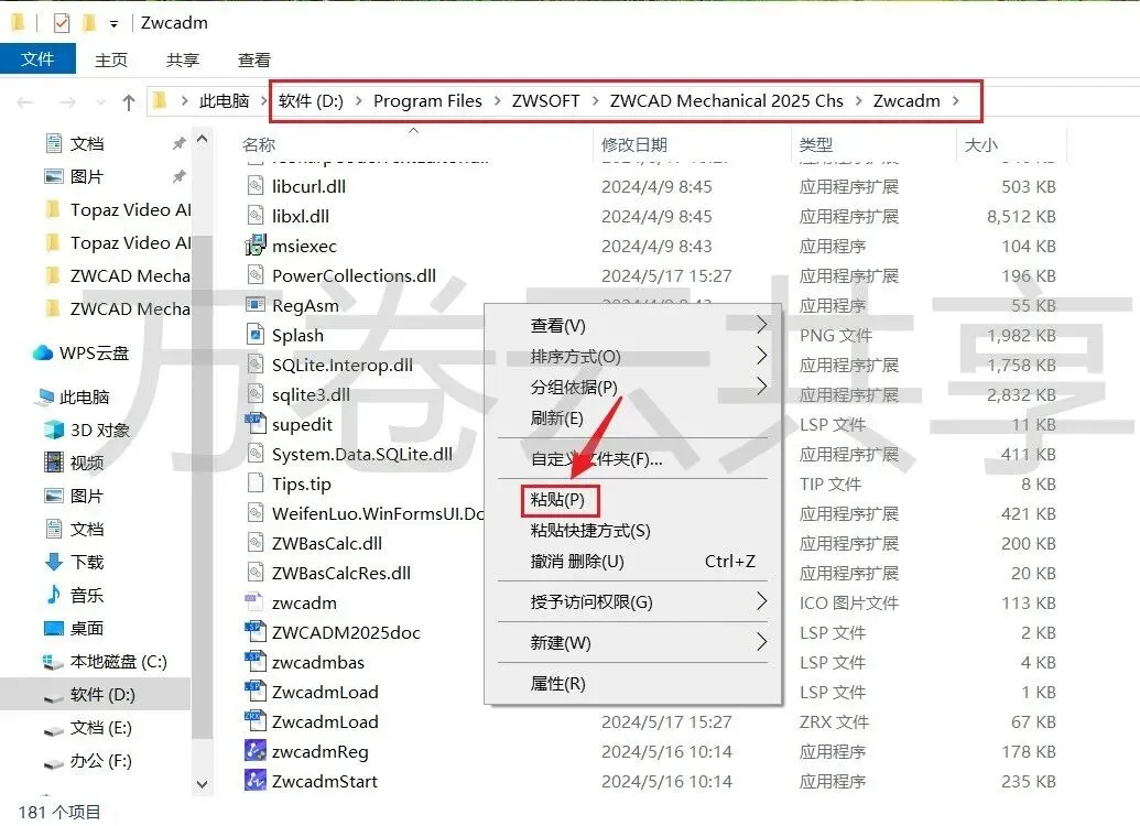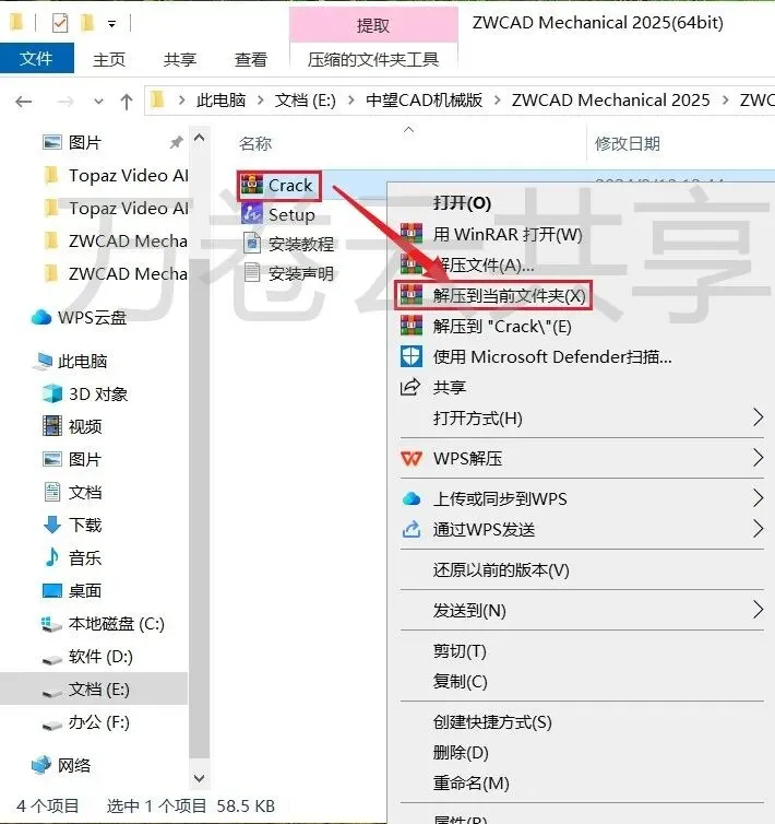 1.鼠标右击现在后的压缩包,选择→解压到ZWCAD Mechanical 2025(64bit)