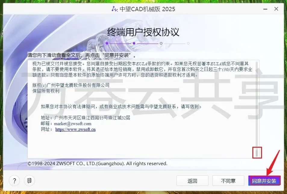 4.阅读完毕后点击→同意并安装