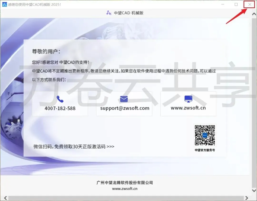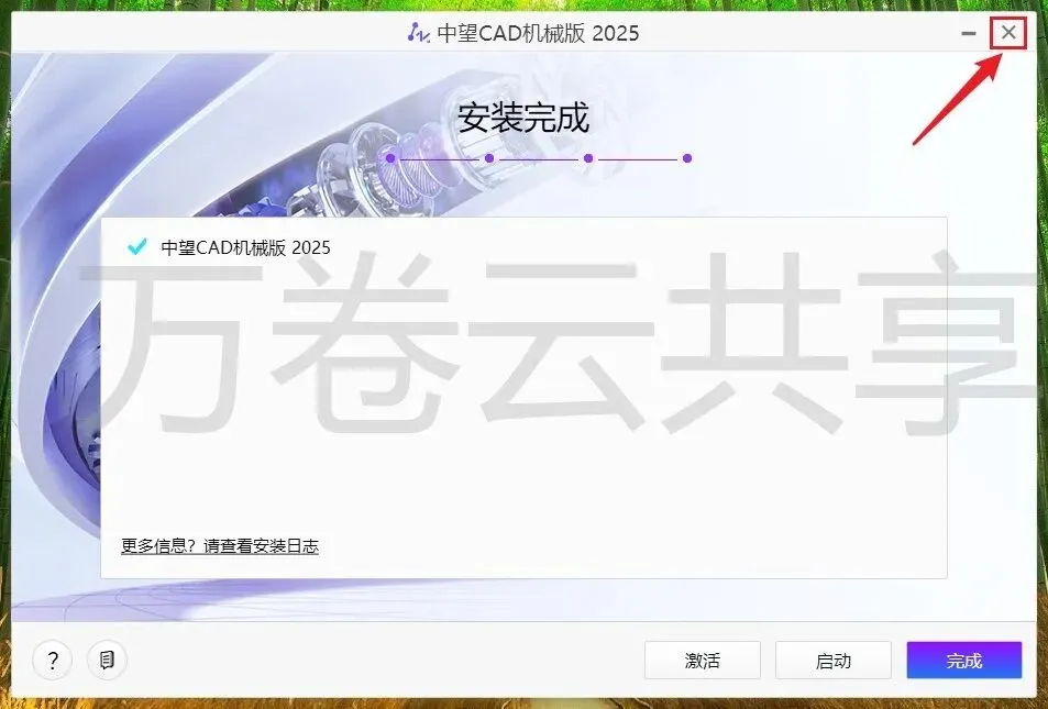 6.安装完成后点击→右上角X关闭