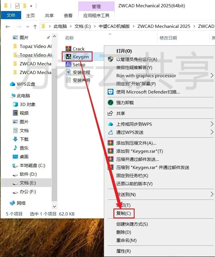 9.鼠标右击解压出来的Keygen,选择→复制
