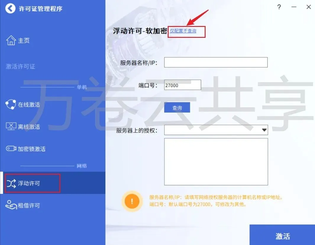 18.点击→浮动许可,点击→仅配置不查询
