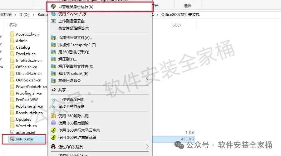 2、找到setup安装程序,以管理员身份运行。