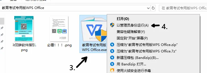 3.点击wps安装包,4.右键以管理员身份运行