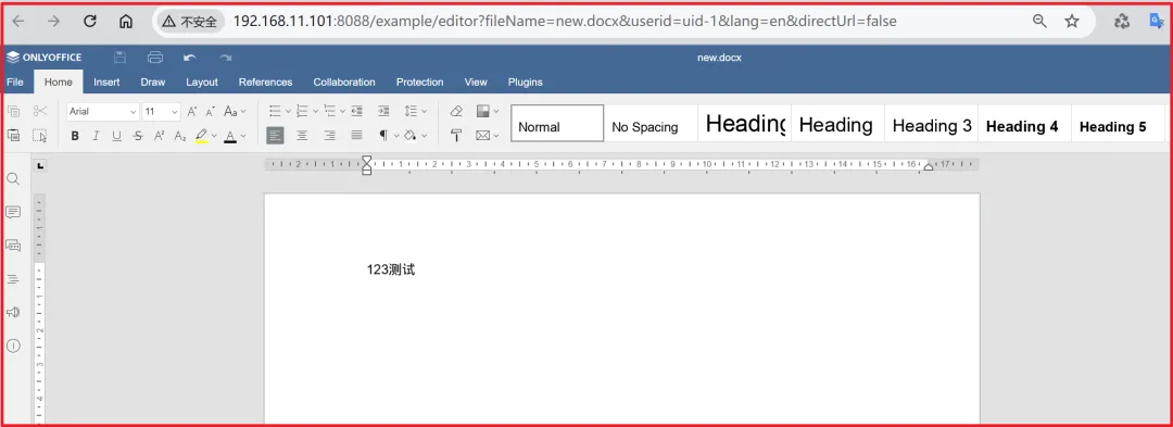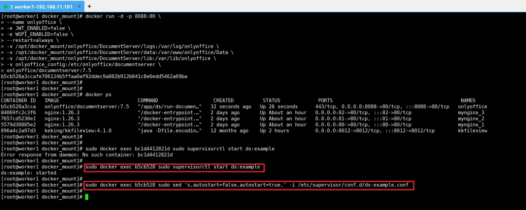 前提:Linux服务器上已经安装好docker服务。docker run -d -p 8088:80 \--name onlyoffice \-e JWT_ENABLED=false \-e WOPI_ENABLED=false \--restart=always \-v /opt/docker_mount/onlyoffice/DocumentServer/logs:/var/log/onlyoffice \-v /opt/docker_mount/onlyoffice/DocumentServer/data:/var/www/onlyoffice/Data \-v /opt/docker_mount/onlyoffice/DocumentServer/lib:/var/lib/onlyoffice \-v onlyoffice_config:/etc/onlyoffice/documentserver \onlyoffice/documentserver:7.5