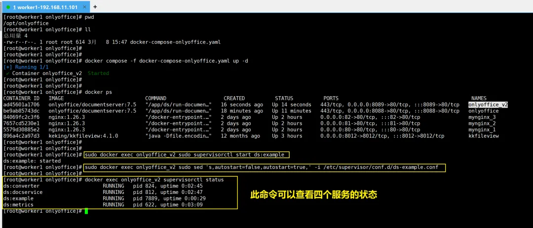 ONLYOFFICE是一套开源的在线办公协作平台,主要提供在线文档编辑(Word/Excel/PPT)+ 协同办公能力。它常被用于替代传统 Office,在企业内部系统(如 OA、文档管理系统、网盘等)中实现浏览器在线编辑文档。2、启动onlyoffice