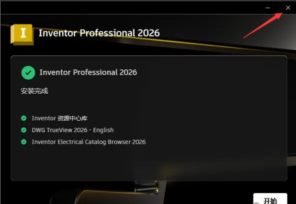 10.安装完成,点击右上角X关闭窗口(若有提示重启,点击稍后)。