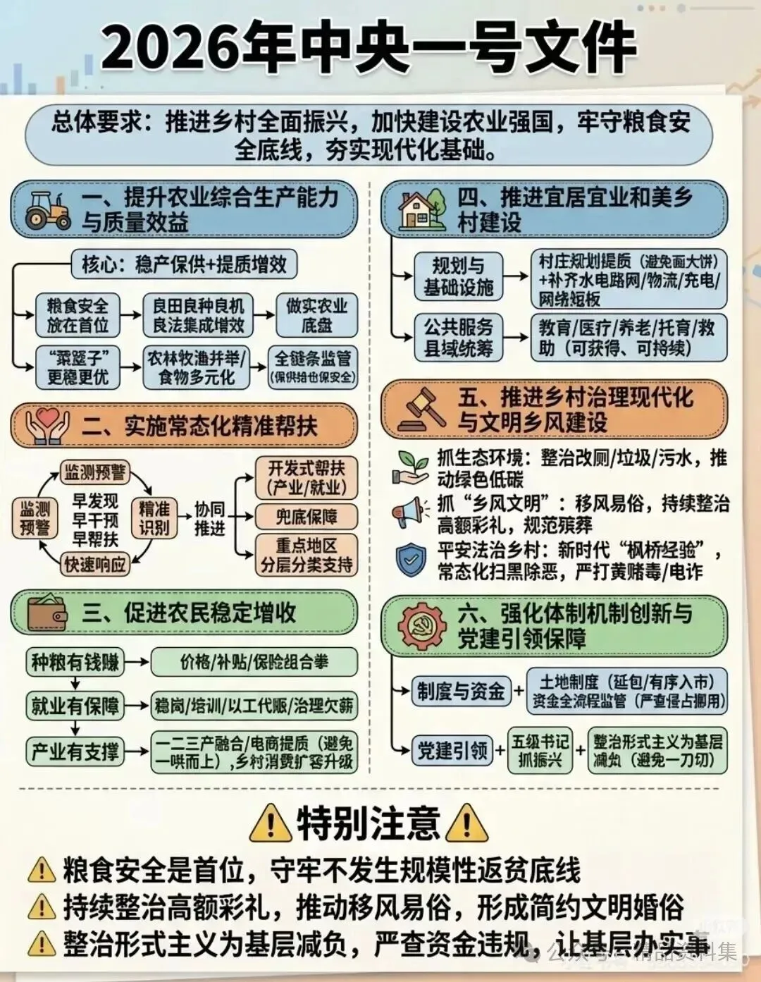 宝子们速码✅ 2026中央一号文件已正式发布(2月3日公布),作为党的十八大以来第14个聚焦三农的纲领性文件,现已整理好重点解读,附原文可直接下载,还含高清PDF版本!文件围绕农业农村现代化、乡村全面振兴、粮食安全等核心部署重点工作,划重点后精准提炼核心要点,不用逐字啃全文。高清PDF可一键保存、打印,适配学习、工作、科普等多种场景,不用四处零散搜集,收藏起来快速掌握核心政策👇