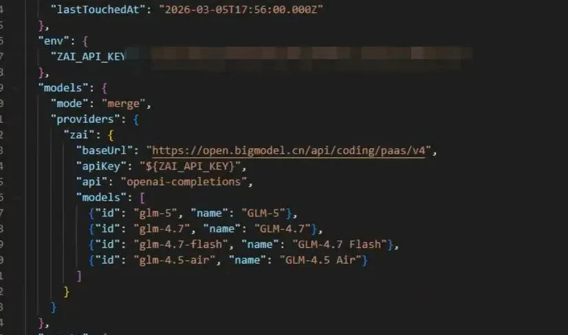 国外的模型消耗token比较厉害,可以放在一些任务比较复杂的场景,如果是日常的简单工作可以选择使用国内的模型。现在国内的模型质量也还不错的,像是MiniMax、Kim、智谱都是不错的选择。这里我使用的是GLM-5,主要是因为我有编程套餐。不过这里也可以先不着急选择,后面在配置文件中配置也行。