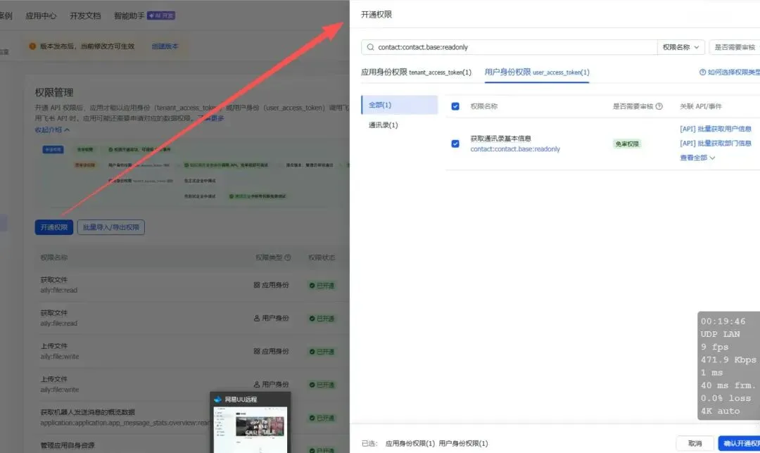 contact:contact.base:readonly,用户和应用都打上勾
