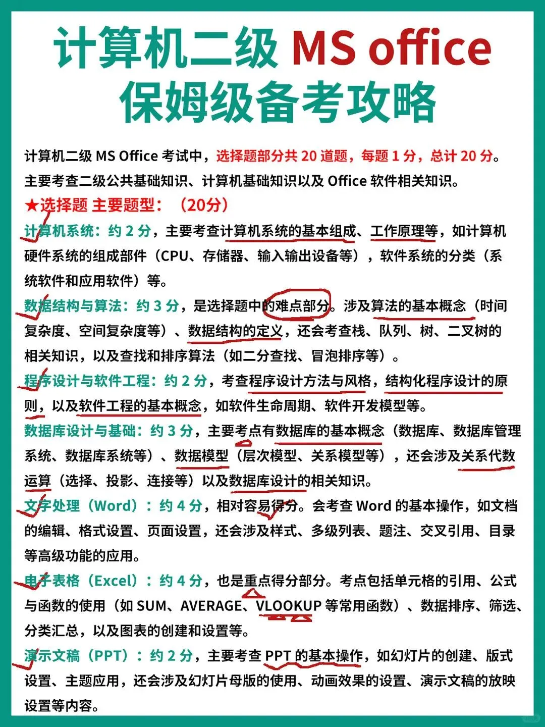 计算机二级MS Office保姆级备考攻略(各考点分值分布)