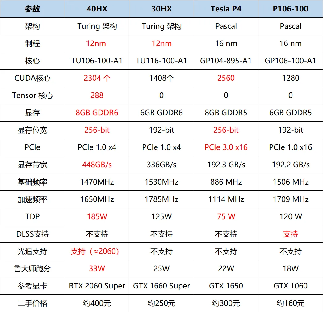 40HX、30HX、Tesla P4、P106-100,这几款经典的矿卡正悄然回归,价格低至300元以内,性能却依然能打,到底哪款最值呢?
